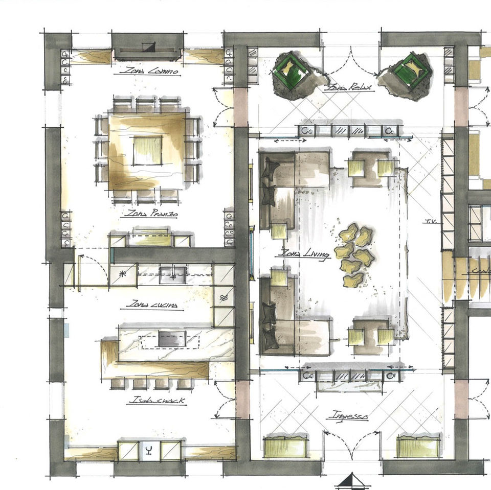 Ecco che si innesca un' elaborazione e una sintesi tramite il disegno a mano libera. Nel disegnare si sovrappongono ipotesi e correzioni continue fino ad arrivare alla forma finale fissata sulla carta tramite l'espressività della mano.